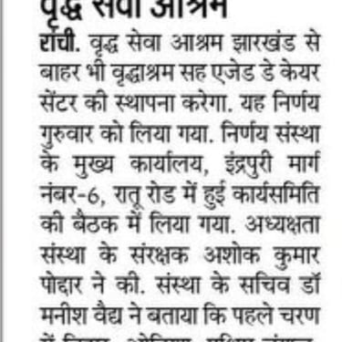 सचिव "वृद्ध सेवा आश्रम",राँची झारखण्ड